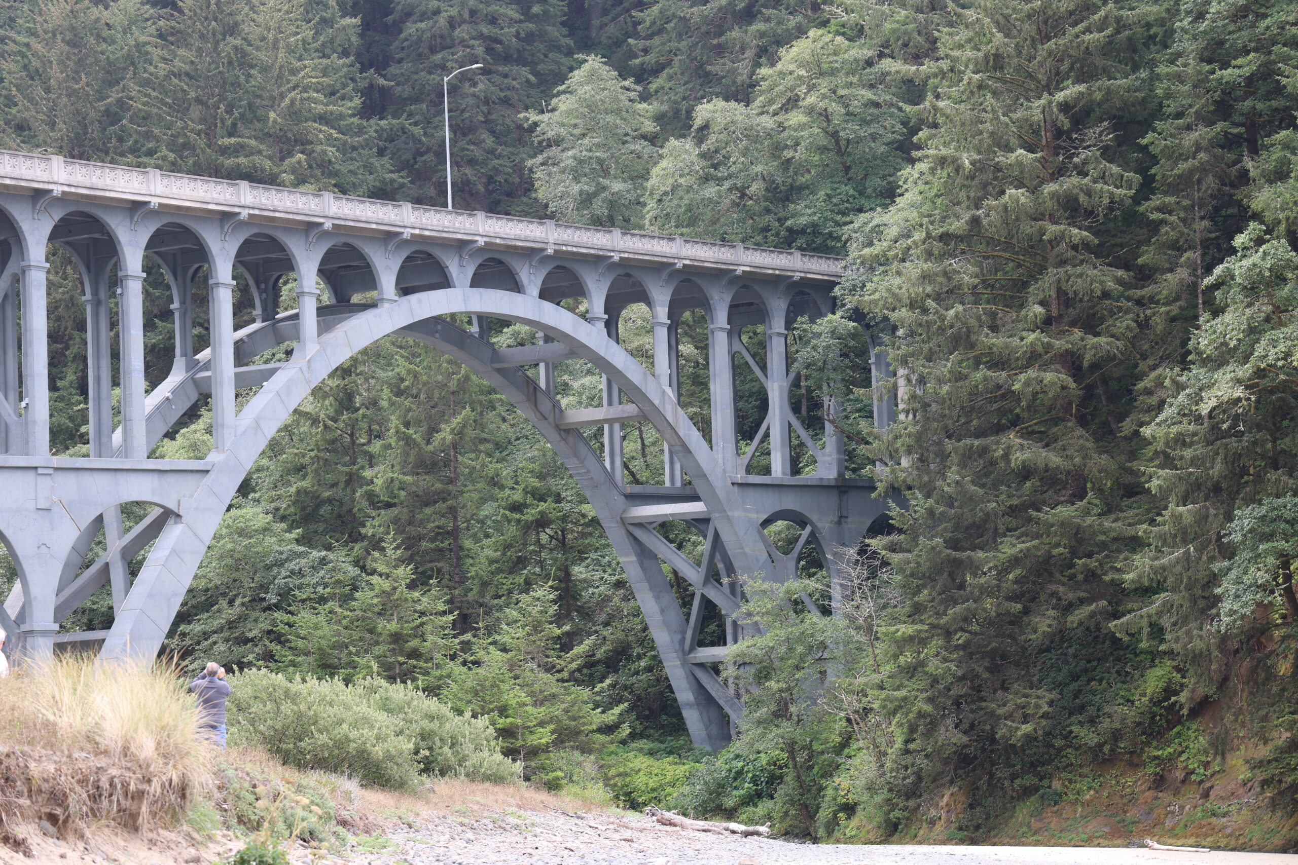 Running a little behind in posting, but we took a nice drive south along the coast a few days ago and want to share pics from that drive. We stopped at Heceta Head Lighthouse for a walk on the beach and to see some sea caves carved into the cliffs at the shoreline. Also some great sea stacks just offshore. A small river was coming into the ocean and the road crossed one of a number of beautiful, Deco style bridges along this part of the coast.